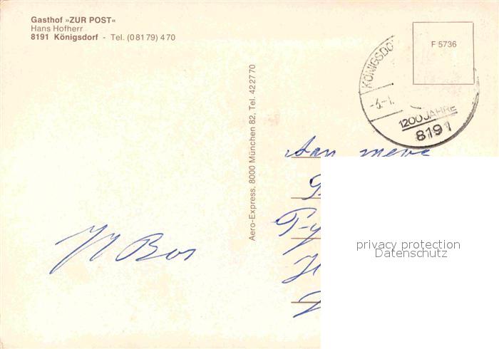 72865086 alte Postkarte Koenigsdorf Oberbayern Gasthof zur Post postalisch gelaufen Erhaltung siehe scans [LiesaD40] KatCode: 11110009173134