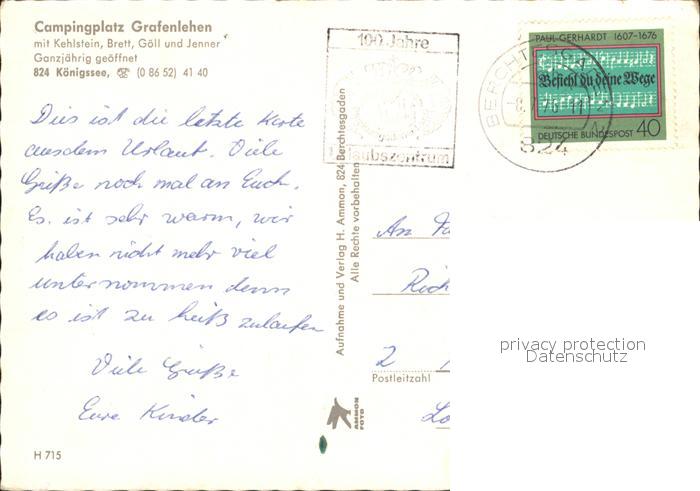 72039840 alte Postkarte Koenigsee Berchtesgaden Campingplatz Grafenlehen Alpenpanorama postalisch gelaufen Erhaltung siehe scans KatCode: 11110009172116