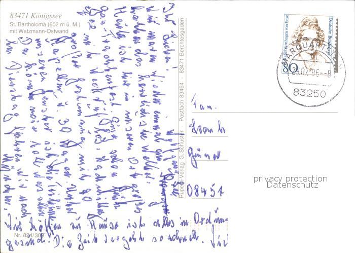 72377375 alte Postkarte Koenigsee Berchtesgaden St. Bartholomae mit Watzmann postalisch gelaufen Erhaltung siehe scans KatCode: 11110009172116