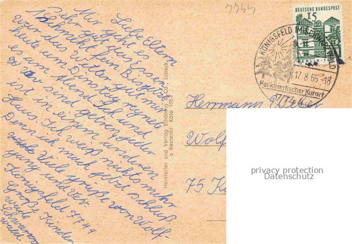 74064935 alte Postkarte Koenigsfeld Baden Schwarzwald BW Kurhaus Panorama Kurpark Vogelnest Am Weiher Buchenberger Kirchlein Schwimmbad Ruine Waldau postalisch gelaufen Erhaltung siehe scans [WerneD78] KatCode: 11110008326031