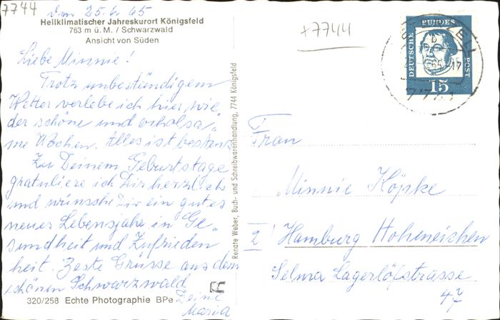 41346251 alte Postkarte Koenigsfeld Schwarzwald postalisch gelaufen gute Erhaltung KatCode: 11110008326031