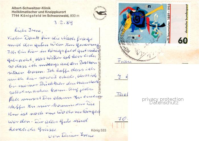 72976163 alte Postkarte Koenigsfeld Schwarzwald Albert Schweitzer Klinik postalisch gelaufen Erhaltung siehe scans [LiesaD40] KatCode: 11110008326031