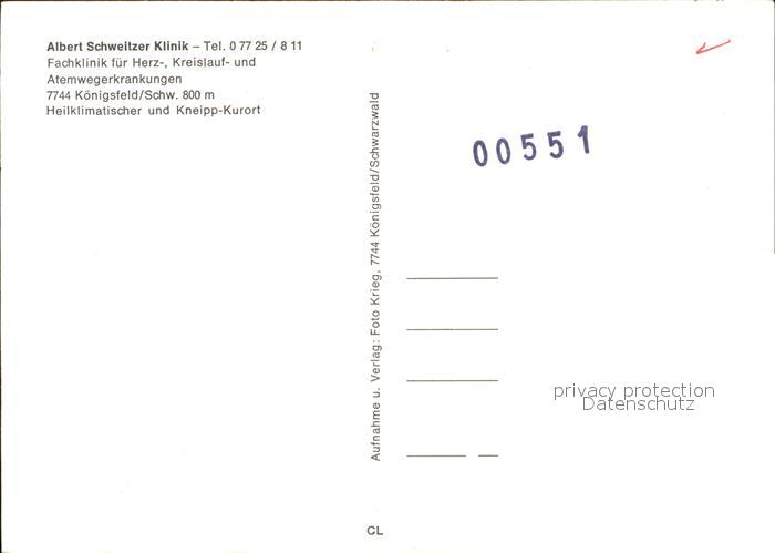 72425934 Koenigsfeld Schwarzwald Albert Schweitzer Klinik postalisch nicht gelaufen Erhaltung siehe scans KatCode: 11110008326031