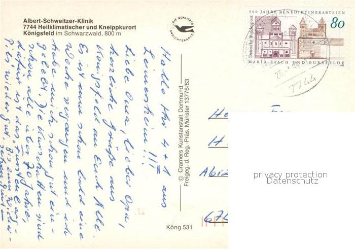 72972787 alte Postkarte Koenigsfeld Schwarzwald Albert Schweitzer Klinik Kneippkurort Fliegeraufnahme postalisch gelaufen Erhaltung siehe scans [FriedD77] KatCode: 11110008326031