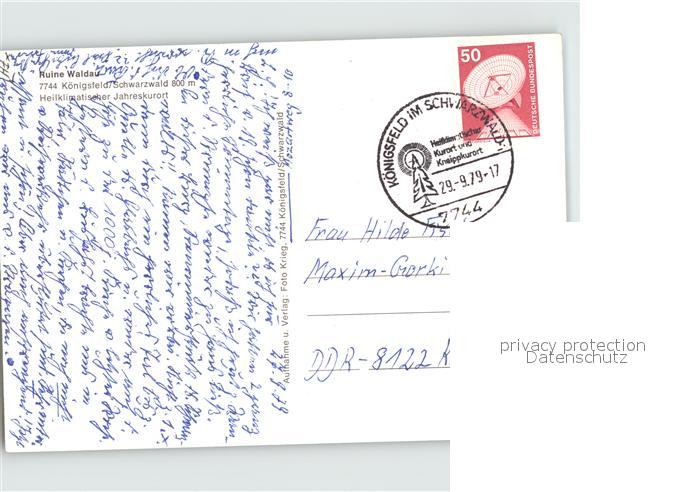 72412622 alte Postkarte Koenigsfeld Schwarzwald Burgruine Waldau postalisch gelaufen Erhaltung siehe scans KatCode: 11110008326031