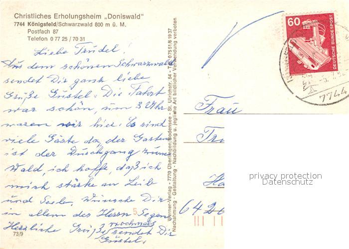 73033972 alte Postkarte Koenigsfeld Schwarzwald Christliches Erholungshei9m Doniswald postalisch gelaufen Erhaltung siehe scans [NatalD47] KatCode: 11110008326031
