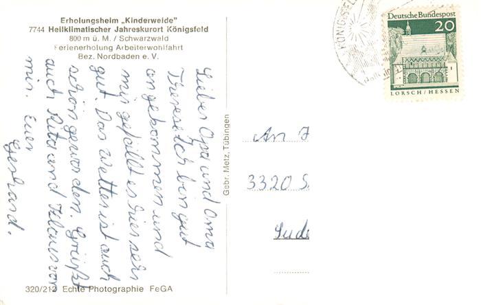73948896 alte Postkarte Koenigsfeld Schwarzwald Erholungsheim Kinderweide postalisch gelaufen Erhaltung siehe scans [FriedD77] KatCode: 11110008326031