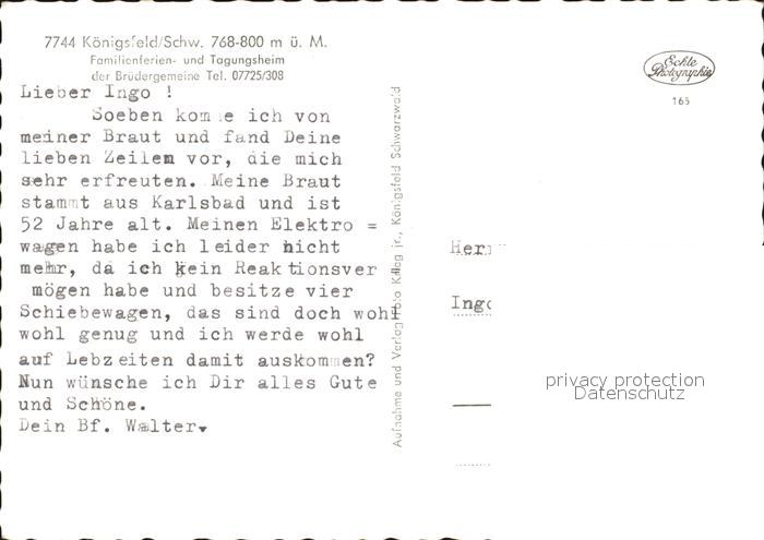 72505717 Koenigsfeld Schwarzwald Ferienheim Bruedergemeinde postalisch nicht gelaufen Erhaltung siehe scans KatCode: 11110008326031
