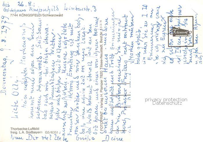 73836468 alte Postkarte Koenigsfeld Schwarzwald Fliegeraufnahme postalisch gelaufen Erhaltung siehe scans [FriedD77] KatCode: 11110008326031