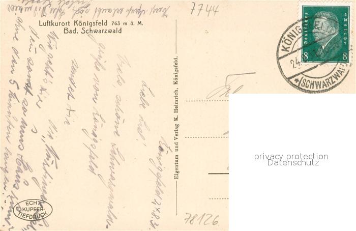73710618 alte Postkarte Koenigsfeld Schwarzwald Fliegeraufnahme postalisch gelaufen Erhaltung siehe scans [WerneD78] KatCode: 11110008326031