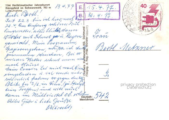 73010307 alte Postkarte Koenigsfeld Schwarzwald Fliegeraufnahme postalisch gelaufen Erhaltung siehe scans [WerneD78] KatCode: 11110008326031