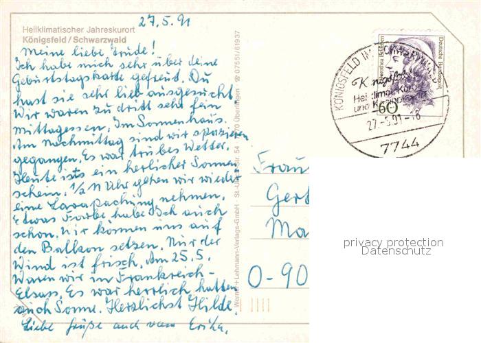72653542 alte Postkarte Koenigsfeld Schwarzwald Fliegeraufnahme postalisch gelaufen Erhaltung siehe scans [WerneD78] KatCode: 11110008326031