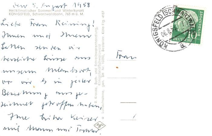 73915700 alte Postkarte Koenigsfeld Schwarzwald Fliegeraufnahme postalisch gelaufen Erhaltung siehe scans [WerneD78] KatCode: 11110008326031