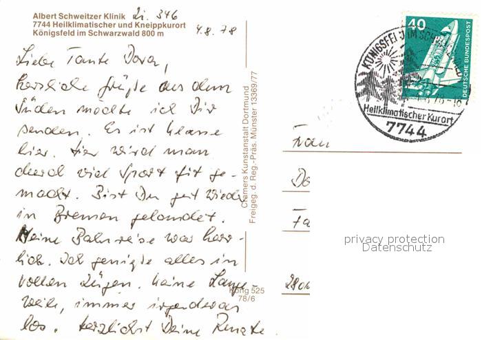 72888998 alte Postkarte Koenigsfeld Schwarzwald Fliegeraufnahme Albert Schweitzer Klinik postalisch gelaufen Erhaltung siehe scans [LiesaD40] KatCode: 11110008326031