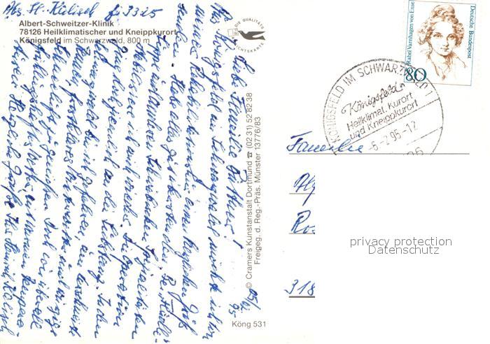 72948444 alte Postkarte Koenigsfeld Schwarzwald Fliegeraufnahme Albert Schweitzer Klinik postalisch gelaufen Erhaltung siehe scans [KathaD81] KatCode: 11110008326031