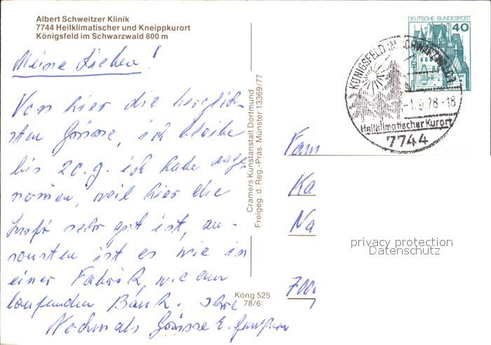 72572758 alte Postkarte Koenigsfeld Schwarzwald Fliegeraufnahme Albert Schweizer Klinik postalisch gelaufen Erhaltung siehe scans [AndreD76] KatCode: 11110008326031