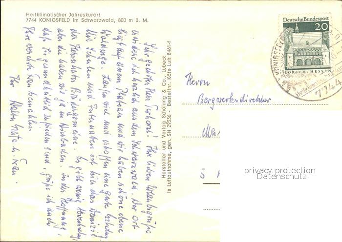 72176847 alte Postkarte Koenigsfeld Schwarzwald Fliegeraufnahme mit Schwimmbad postalisch gelaufen Erhaltung siehe scans KatCode: 11110008326031