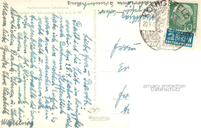 73759494 alte Postkarte Koenigsfeld Schwarzwald Fliegeraufnahme Teilansicht postalisch gelaufen Erhaltung siehe scans [LiesaD40] KatCode: 11110008326031