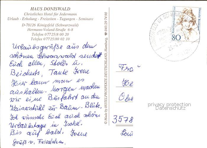 72573996 alte Postkarte Koenigsfeld Schwarzwald Haus Doniswald postalisch gelaufen Erhaltung siehe scans [LiesaD40] KatCode: 11110008326031