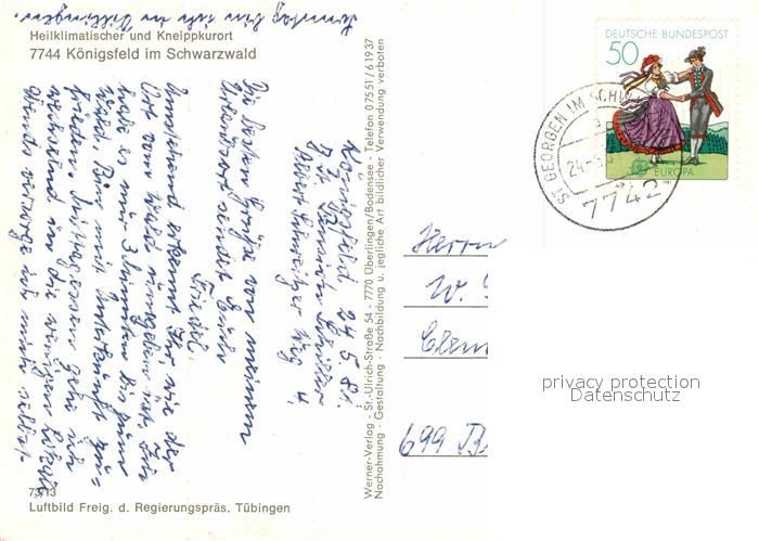 72752461 alte Postkarte Koenigsfeld Schwarzwald Heilklimatischer Kneippkurort Fliegeraufnahme postalisch gelaufen Erhaltung siehe scans [FriedD77] KatCode: 11110008326031