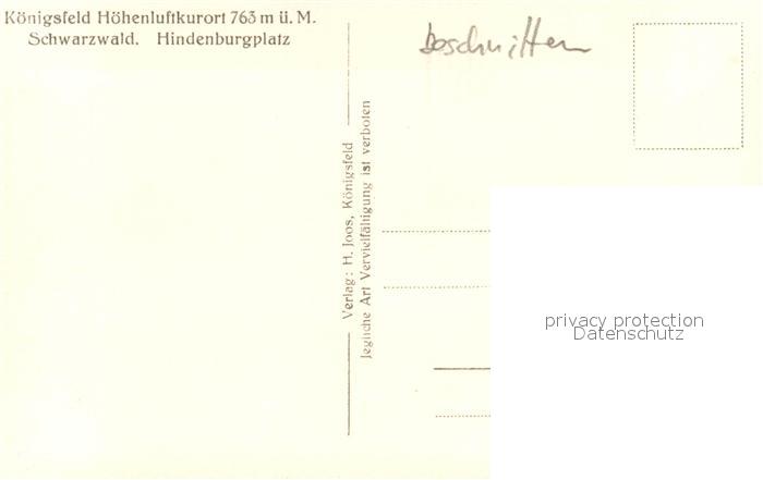 73564566 Koenigsfeld Schwarzwald Hindenburgplatz postalisch nicht gelaufen Erhaltung siehe scans [KathaD81] KatCode: 11110008326031