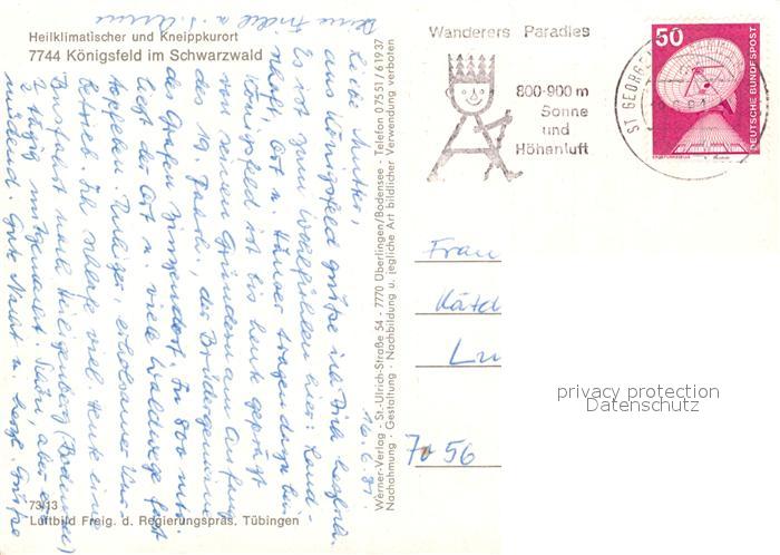 73085187 alte Postkarte Koenigsfeld Schwarzwald Kneippkurort Fliegeraufnahme postalisch gelaufen Erhaltung siehe scans [FriedD77] KatCode: 11110008326031