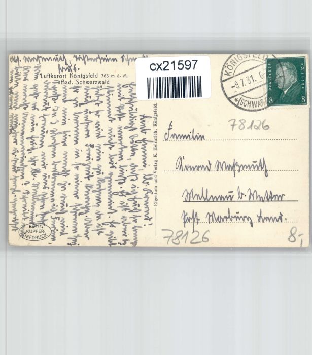 30739451 alte Postkarte Koenigsfeld Schwarzwald Koenigsfeld Fliegeraufnahme postalisch gelaufen KatCode: 11110008326031