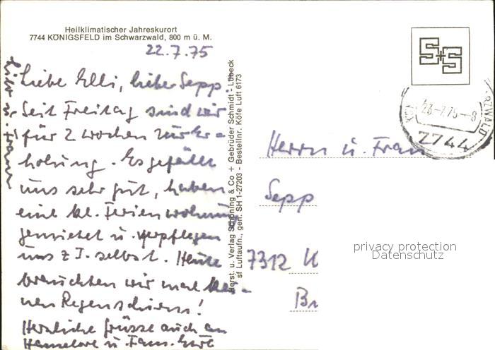 72428102 alte Postkarte Koenigsfeld Schwarzwald Kurort Fliegeraufnahme postalisch gelaufen Erhaltung siehe scans KatCode: 11110008326031