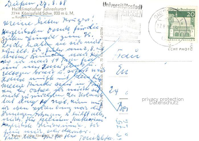73656249 alte Postkarte Koenigsfeld Schwarzwald Kurpark Fliegeraufnahme postalisch gelaufen Erhaltung siehe scans [WerneD78] KatCode: 11110008326031
