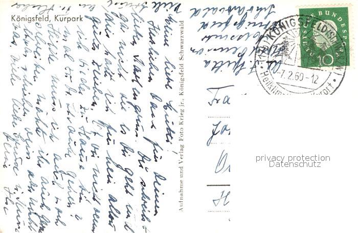 73154927 alte Postkarte Koenigsfeld Schwarzwald Kurpark Fontaene postalisch gelaufen Erhaltung siehe scans [WerneD78] KatCode: 11110008326031