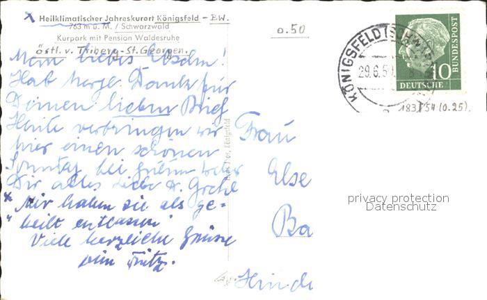 72312670 alte Postkarte Koenigsfeld Schwarzwald Kurpark Pension Waldesruhe postalisch gelaufen Erhaltung siehe scans KatCode: 11110008326031