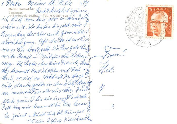 73892169 alte Postkarte Koenigsfeld Schwarzwald Marie Heuser Heim Speisesaal postalisch gelaufen Erhaltung siehe scans [FriedD77] KatCode: 11110008326031