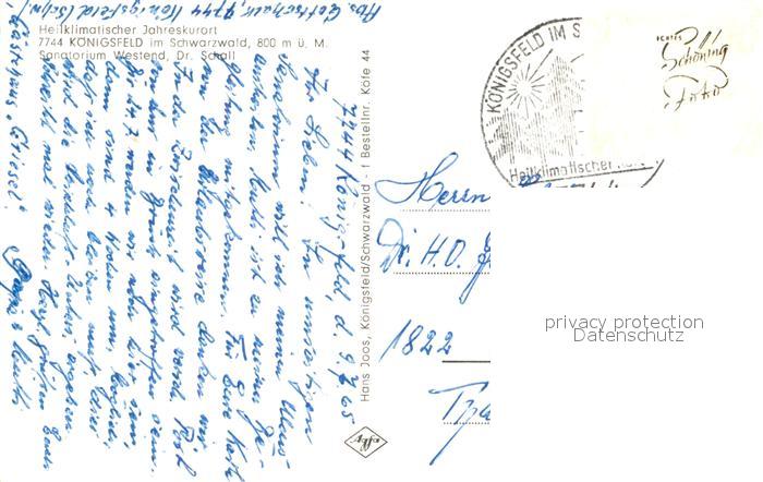 43495766 alte Postkarte Koenigsfeld Schwarzwald Sanatorium Westend Dr Schall postalisch gelaufen Erhaltung siehe scans [WerneD78] KatCode: 11110008326031