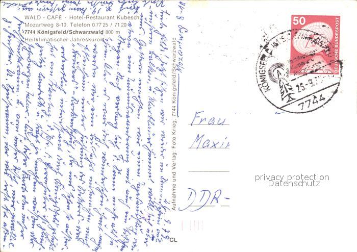 72373258 alte Postkarte Koenigsfeld Schwarzwald Wald Cafe Kubesch postalisch gelaufen Erhaltung siehe scans KatCode: 11110008326031