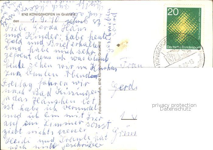 71963287 alte Postkarte Koenigshofen Bad im Grabfeld postalisch gelaufen Erhaltung siehe scans KatCode: 11110009673141