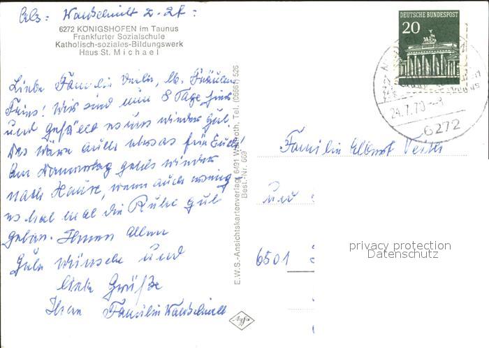 72127019 alte Postkarte Koenigshofen Niedernhausen Taunus mit Umgebung postalisch gelaufen Erhaltung siehe scans KatCode: 11110006439011