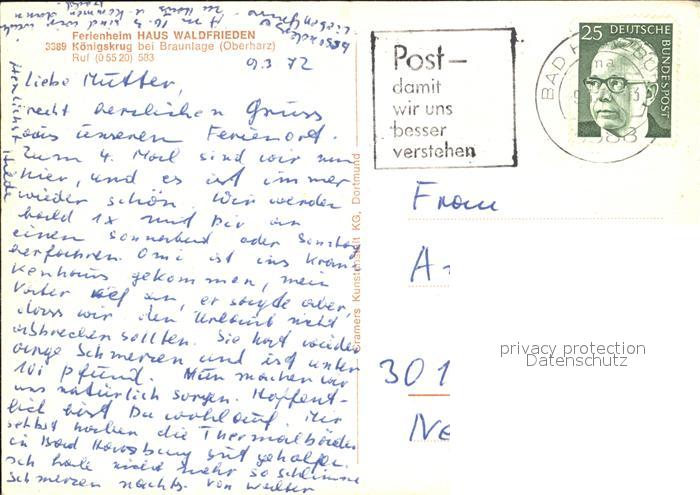 72419633 alte Postkarte Koenigskrug Harz Ferienheim Haus Waldfrieden im Winter postalisch gelaufen Erhaltung siehe scans KatCode: 11110003153003