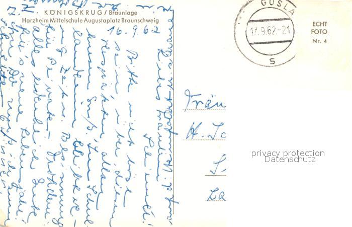 33539680 alte Postkarte Koenigskrug Harz Harzheim Mittelschule Augustaplatz Braunschweig postalisch gelaufen Erhaltung siehe scans [PaolaD17] KatCode: 11110003153003