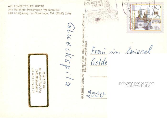 73830012 alte Postkarte Koenigskrug Harz Wolfenbuetteler Huette postalisch gelaufen Erhaltung siehe scans [WerneD78] KatCode: 11110003153003