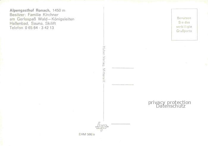 Koenigsleiten Koenigsleithen Pinzgau AT Alpengasthof Ronach Gerlospass postalisch nicht gelaufen Erhaltung siehe scans [IrynaD87] Iryn Katcode 11390322050626