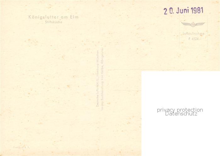 73784260 Koenigslutter Elm Fliegeraufnahme mit Stiftskirche postalisch nicht gelaufen Erhaltung siehe scans [WerneD78] KatCode: 11110003154013
