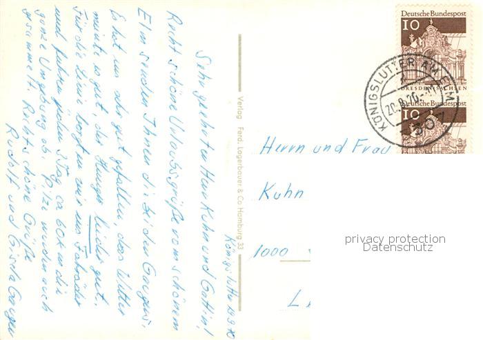 73839740 alte Postkarte Koenigslutter Elm Ortspartien Schwimmbad Kirche Park Fachwerkhaeuser postalisch gelaufen Erhaltung siehe scans [FriedD77] KatCode: 11110003154013