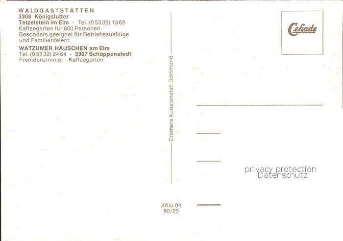 71958412 Koenigslutter Elm Waldgasstaette Tetzelstein Ehrenmal Elm postalisch nicht gelaufen Erhaltung siehe scans KatCode: 11110003154013