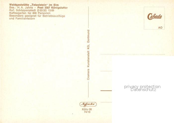 73569189 Koenigslutter Elm Waldgaststaette Tetzelstein im Elm postalisch nicht gelaufen Erhaltung siehe scans [FriedD77] KatCode: 11110003154013