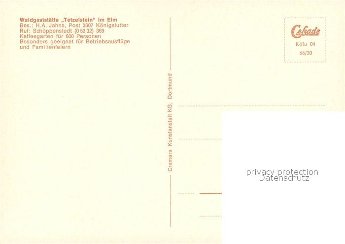 73230416 Koenigslutter Elm Waldgaststaette Tetzelstein Waldweg Landschaftspanorama Elm Ehrenmal postalisch nicht gelaufen Erhaltung siehe scans [FriedD77] KatCode: 11110003154013