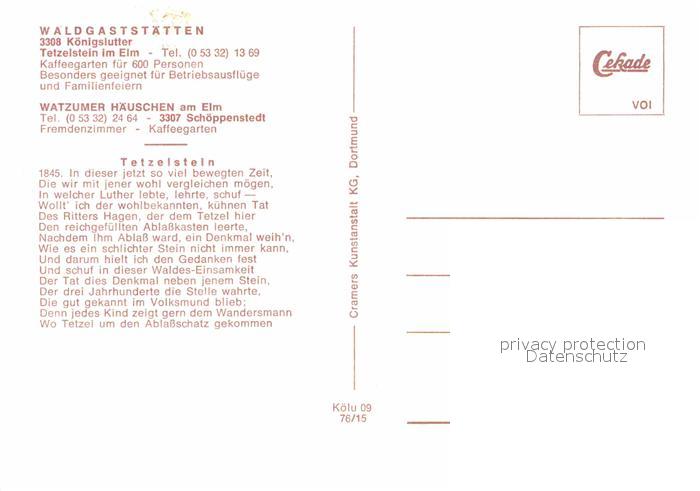 72691372 Koenigslutter Elm Waldgaststaetten Tetzelstein postalisch nicht gelaufen Erhaltung siehe scans [FriedD77] KatCode: 11110003154013