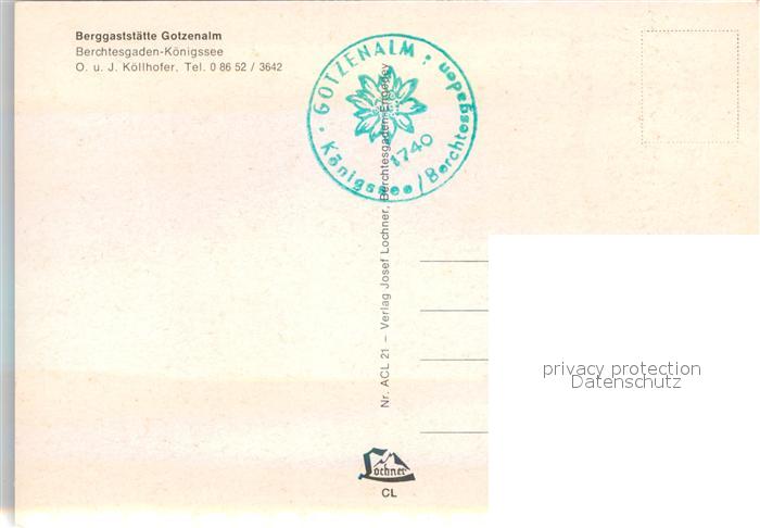 72931582 Koenigssee Berggaststaette Gotzenalm postalisch nicht gelaufen Erhaltung siehe scans [KathaD81] KatCode: 11110009172132