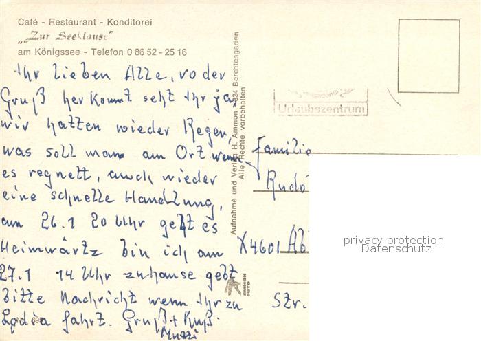 73646320 alte Postkarte Koenigssee Cafe Restaurant Konditorei Zur Seeklause Gartenterrasse postalisch gelaufen Erhaltung siehe scans [FriedD77] KatCode: 11110009172132