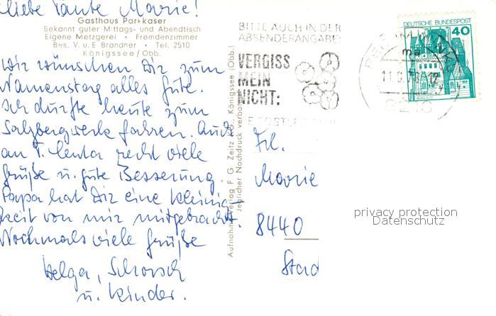 73034662 alte Postkarte Koenigssee Gasthaus Parkkaser postalisch gelaufen Erhaltung siehe scans [KathaD81] KatCode: 11110009172132