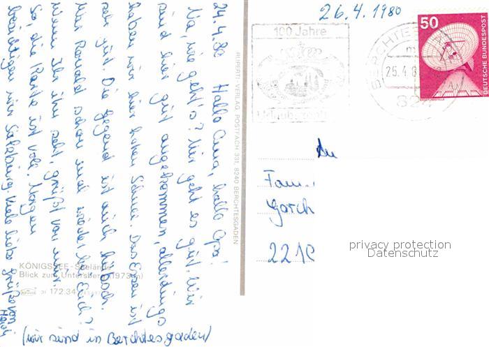 72773106 alte Postkarte Koenigssee Untersberg postalisch gelaufen Erhaltung siehe scans [NatalD47] KatCode: 11110009172132
